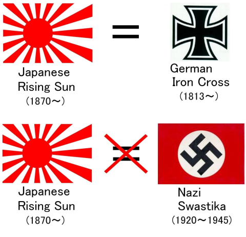 Korea compares The Rising Sun Flag with Harken Kreuz, but that is not correct.