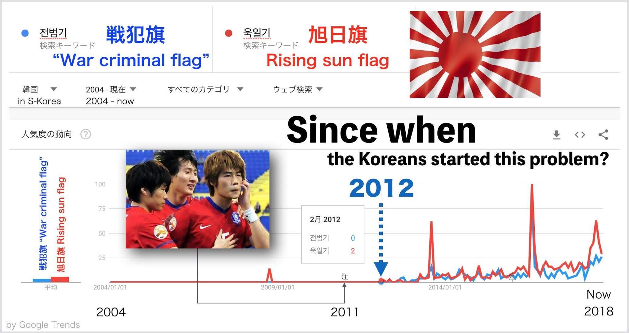 Korea's negative campaign for the Rising Sun Flag suddenly started in 2011.